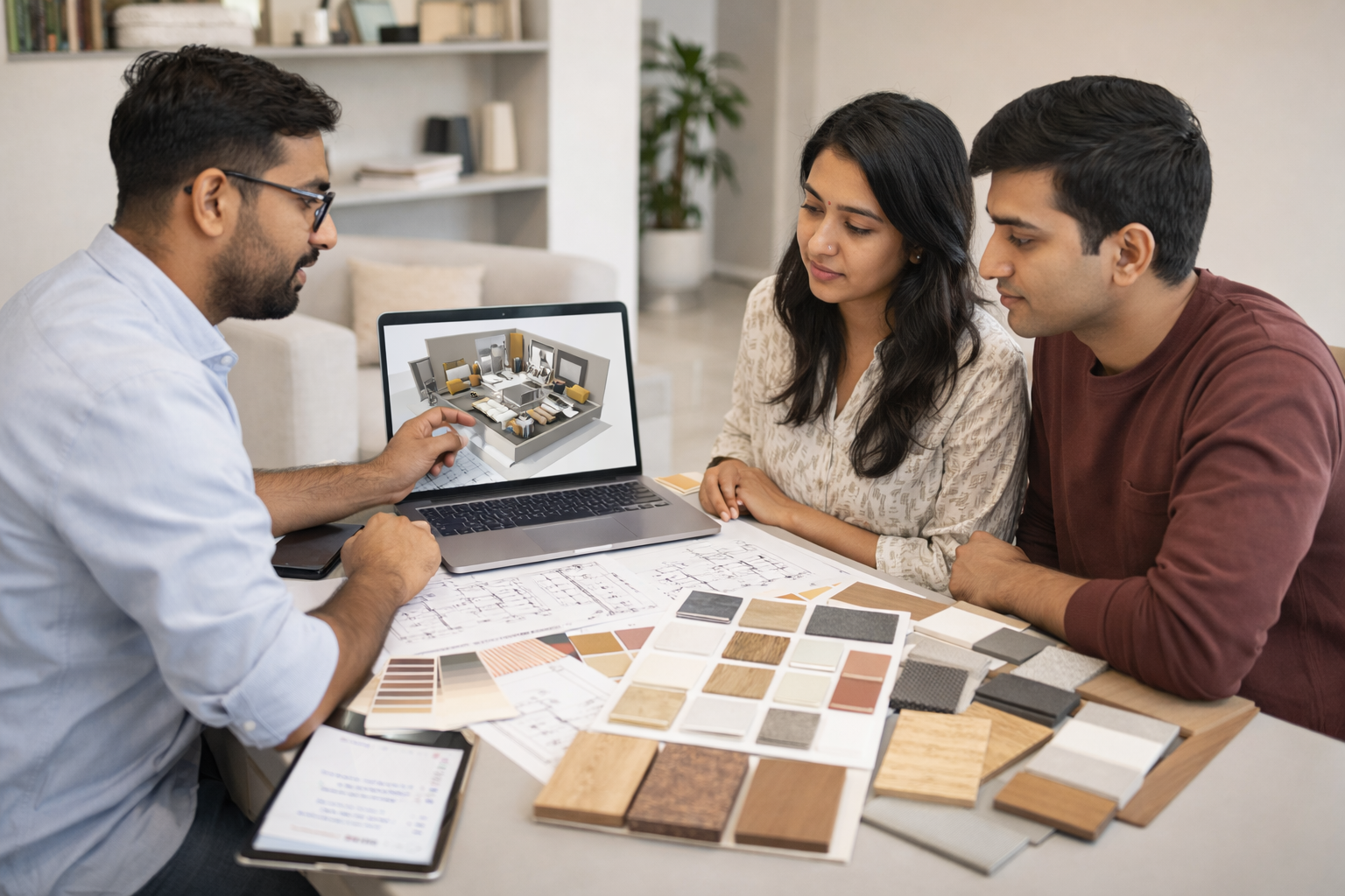 GI (Ground to Infinity) Interiors is a Chennai-based interior design studio specializing in residential and commercial interior solutions. As trusted interior designers in Chennai, we create thoughtfully designed spaces that balance style, functionality, and quality craftsmanship.